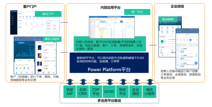 隨著市場的不斷擴大,訂單量劇增,德莎對數字工具和服務的需求比以往任何時候都要旺盛。經過對比調研,德莎決定牽手瑞泰信息,在基于Power platform平臺構建CCP(客戶協同平臺),設立連接、體驗、自主、可控的整體項目目標,以客戶門戶,企業微信,微信小程序連接銷售團隊和渠道伙伴,實現快速響應和高效協作。