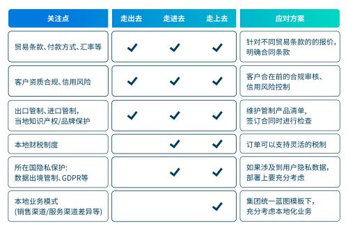 從最近幾年的服務(wù)經(jīng)驗(yàn)跟規(guī)律看,每個(gè)階段的企業(yè)出海所面臨的具體問題略有差異,總的方向建議企業(yè)按照如下幾個(gè)角度去思考規(guī)劃: